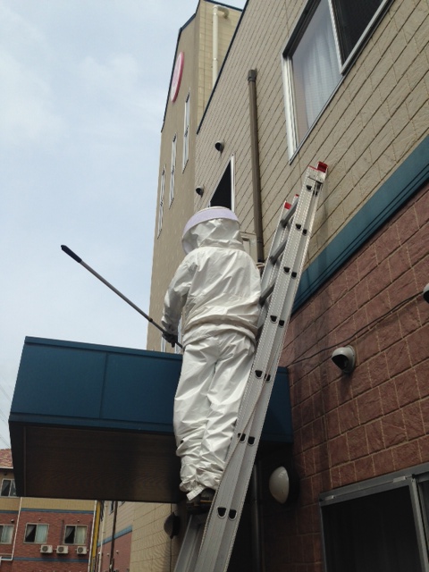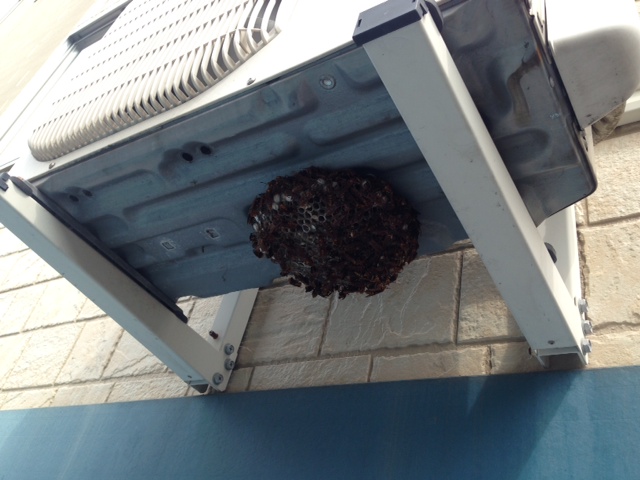 ボンジョルノです。 本日は岡山市南区福田にある施設へ ハチの巣駆除に行ってきました。 エアコンの室外機の下に 大きな蜂の巣が・・・・・・(^^; 作業風景の写真をアップします。 お見積もりは無料です。 お気軽にお電話ください。